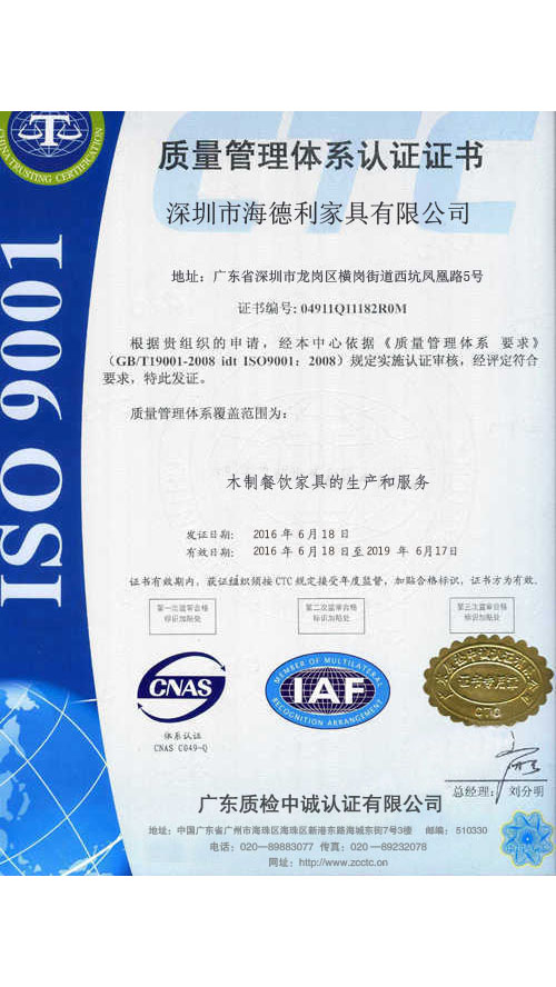送貨安裝后您將獲得餐廳家具工廠海德利家具為期五年的服務保障。